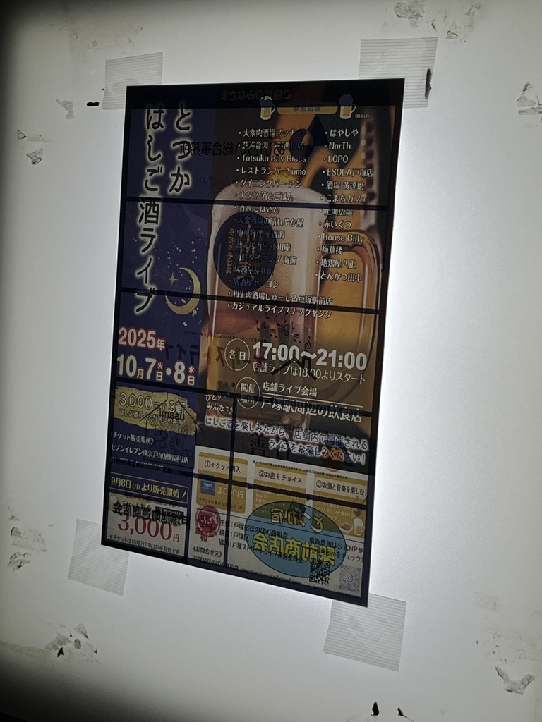 2025/10/07 18:00〜20:30、戸塚駅周辺3会場で箱ライブ鑑賞を行いました。